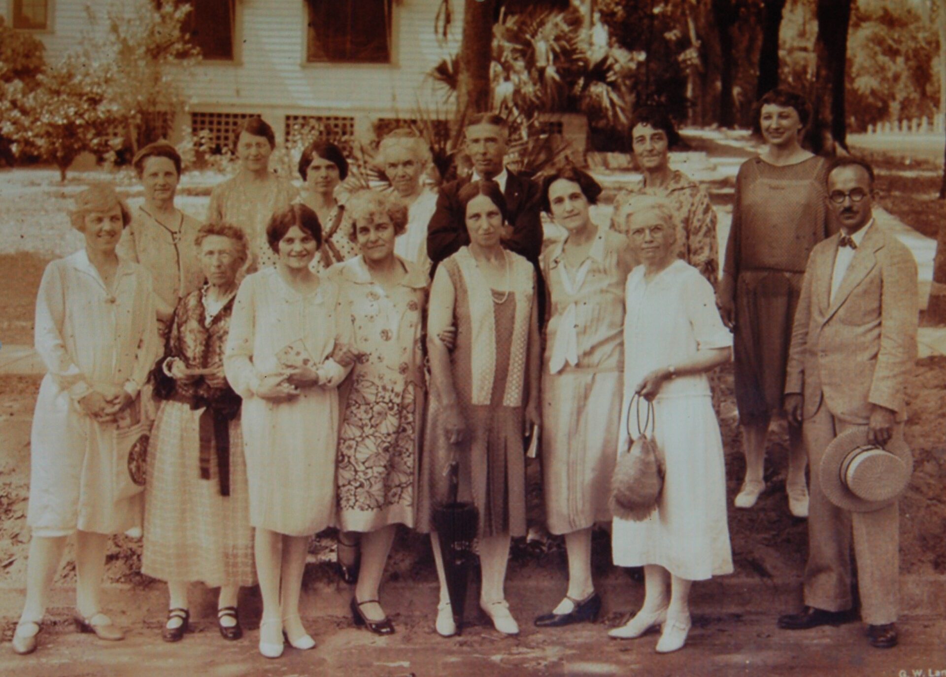 At four o’clock the meeting adjourned and a motorcade through Orlando and Winter Park stopped for “Five o’clock Tea” on the lawn of Mrs. Jerome’s home in Merritt Park, “where a jolly, friendly atmosphere prevailed and a picture taken of those present by Mr. Hamilton of Winter Park.”