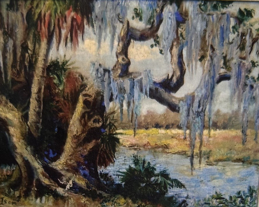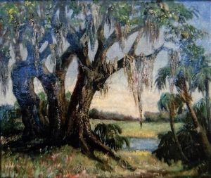 Louise Metcalf Isom, Mossy Oak, oil on canvas, 20.25 by 24 inches. Signed lower left.