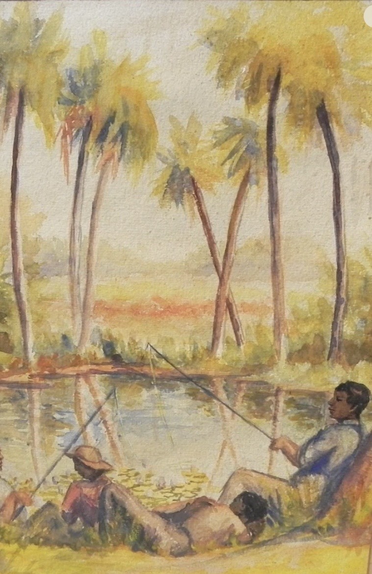 Louise Metcalf Isom, Fishing on Myakka River, Sarasota, 11.5 by 7.5 inches. Signed and titled on verso.