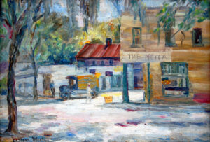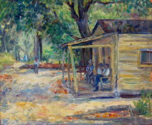 Collecting Florida art is, for me, a passion, a love affair with the art and the artists. This most true for me when it comes to Lillian Wells. E was first introduced to her about twenty years ago when I found one of her canvases in Lakeland. I was visiting my old friend antiques dealer Maurice Cheeks at his shop off Florida Boulevard in the historic district. Cheeks, in his charming way, showed me an oil on board, titled on the back, “The Shop, an original sketch on Dover Street, Negro section, DeLand, Fla. Painted by Lillian Wells.” It was a sweet little sun-drenched scene of three men, escaping the heat of the day on the porch of the shop, under old, shaded oaks. In the distance two children and a cowboy with a bandana, and possibly a Stetson, approach. With bold impressionistic brush strokes Lillian defined a quiet DeLand afternoon. it was an old painting, perhaps circa 1925, missing a small corner and needing a cleaning. I purchased it for thirty-five dollars. The painting was cleaned, framed, and hung in my home.