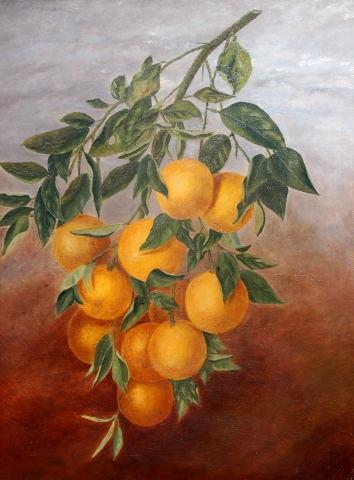 The painting was cleaned, framed, and hung in my home. I wondered about the artist but didn’t give her much thought until a few years later when, on my way to Mount Dora, I stopped at an antique shop in Groveland. The shop was full of neat old stuff but one painting, an iconic still life of Florida oranges, caught my eye. I turned the picture over and found the following: